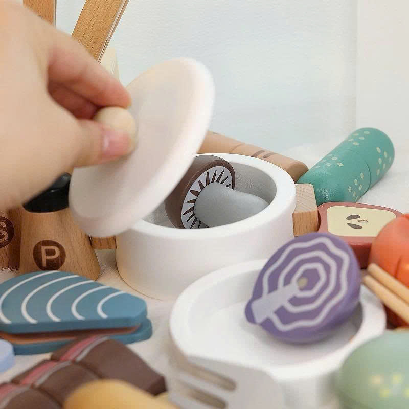 – Trong giai đoạn mẫu giáo này, bố mẹ hãy cố gắng tìm kiếm những chủ đề, những hoạt cảnh và cả những công cụ để giúp cho trò chơi “giả vờ” của bé được sinh động và thú vị hơn nhé. Bộ đồ chơi set đồ ăn này là một trong những công cụ tuyệt vời để bố mẹ cùng bé chơi trò chơi và có những giây phút thư giãn thoải mái