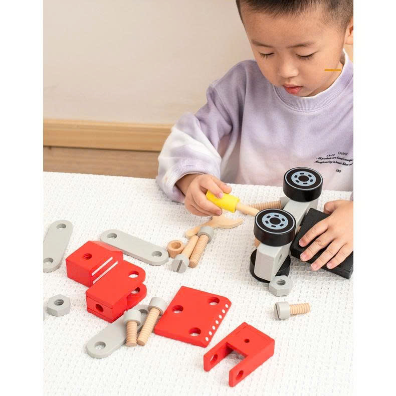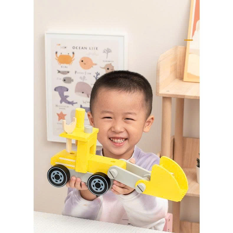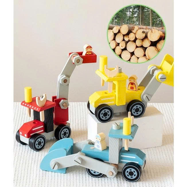 Bộ đồ chơi lắp ráp ô tô cỡ lớn TOYSTORE đồ chơi lắp ráp cần cẩu máy xúc bằng gỗ an toàn cho bé