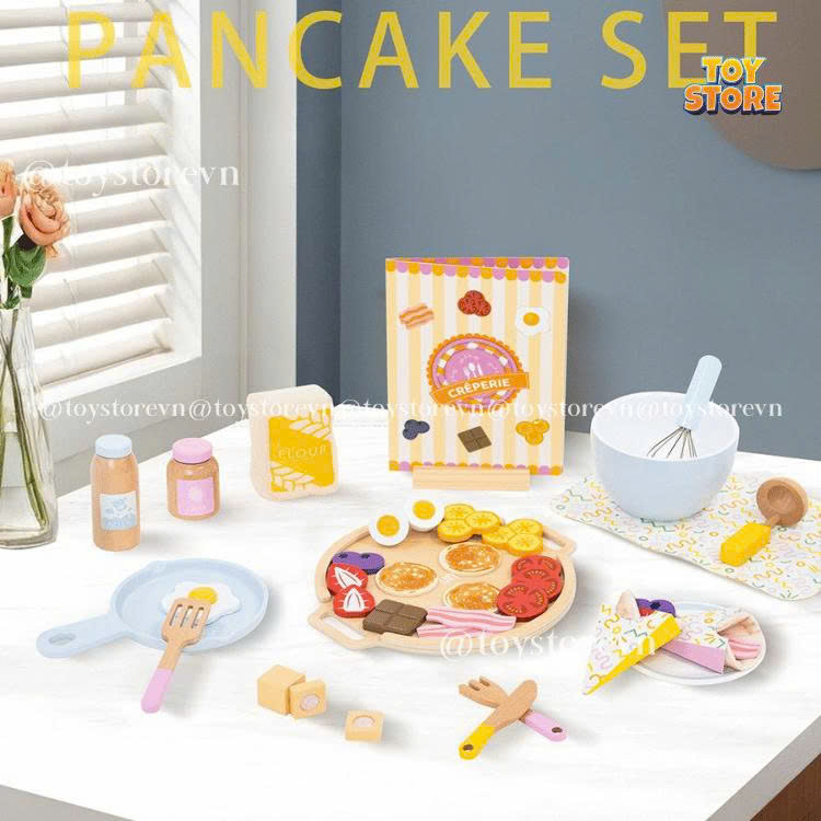 – Trong giai đoạn mẫu giáo này, bố mẹ hãy cố gắng tìm kiếm những chủ đề, những hoạt cảnh và cả những công cụ để giúp cho trò chơi “giả vờ” của bé được sinh động và thú vị hơn nhé. Bộ đồ chơi set pancake này là một trong những công cụ tuyệt vời để bố mẹ cùng bé chơi trò chơi và có những giây phút thư giãn thoải mái