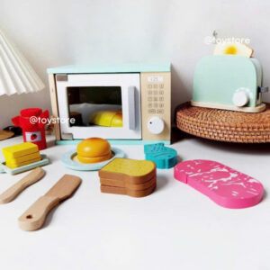 Bộ đồ chơi nấu ăn gỗ hoạ tiết xanh ghi toystore FUDAER set máy làm bánh, cà phê, sinh tố cho bé